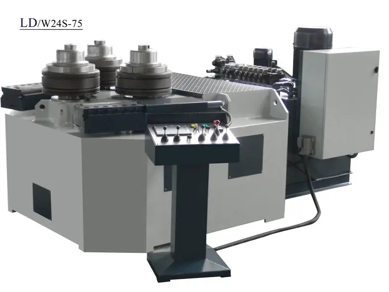 -它是一種弧形向下調(diào)節(jié)式三輻條型彎折機,可以一次完成各種型材的四舍五入、弧形和四舍五入的功能。(注:當(dāng)軋制型材的精度高時,必須準(zhǔn)備一個特殊的模具。如果精度得到適當(dāng)放松,可以使用通用模具來完成軋制。)